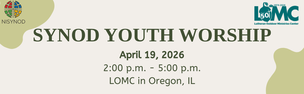 Join us for the 2026 Synod Youth Worship Day. This event, which includes time with Bishop Stacie Fidlar, is for youth in 6th - 12th grade. We will gather from 2:00 p.m. to 5:00 p.m. at LOMC for games, fellowship, worship, and snacks! The plan is to be outside for this event, but we do have a plan if the weather does not allow us to be outside.